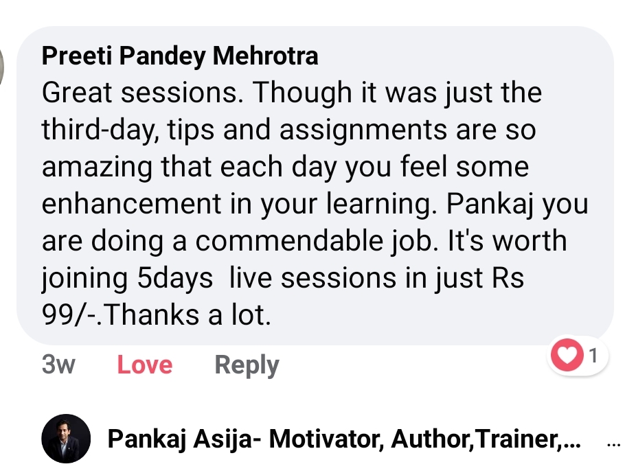 Coach Pankaj बताएँगे कि आप अपने व्यवसाय को बढ़ाने के लिए Public Speaking skills का उपयोग कैसे कर सकते हैं और job में 20× growth कैसे प्राप्त कर सकते हैं